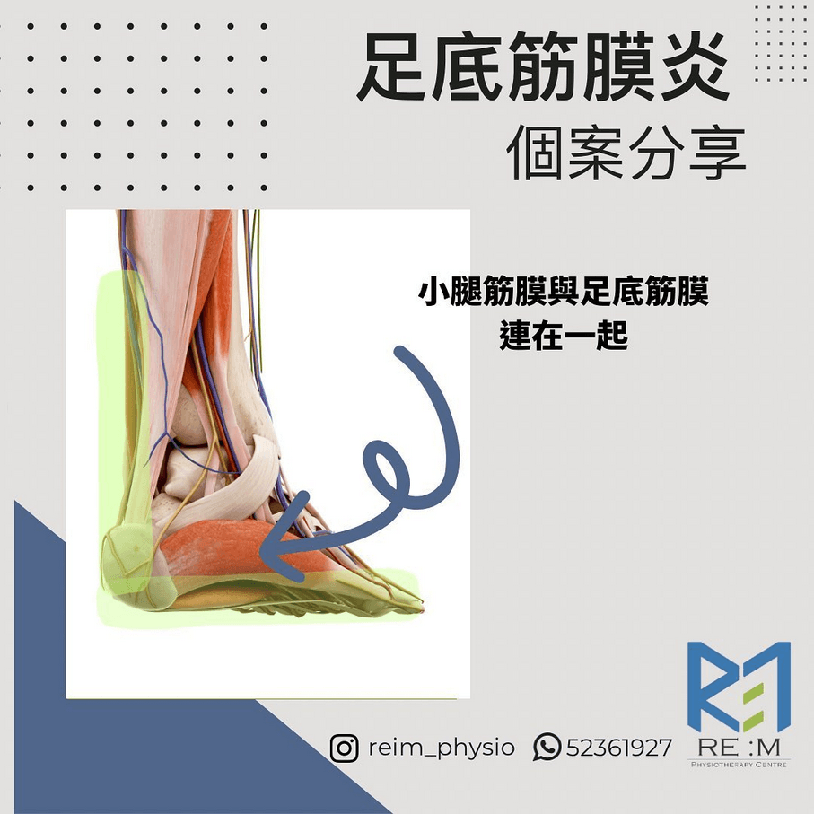 曾經遇到一個個案是因為小腿肌肉太緊而拉扯到足底筋膜而導致足底痛,因為小腿肌肉筋膜和足底筋膜連在一起。而導致小腿肌肉筋膜緊的原因是因為多年前曾經腳踝扭傷,Talus(距骨)前移,導致腳用力不當,小腿比平時要用更多的力而導致繃緊。
